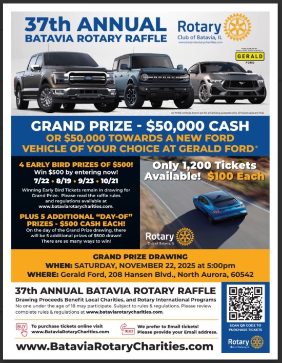 Our members strive to learn and understand more about our complex world and have a positive impact on some of the most difficult problems facing humanity. We commit to high ethical standards in our relationships and professional undertakings. By doing these things we individually gain more than we contribute, and our fellowship extends beyond the Batavia Rotary Club to our daily lives.