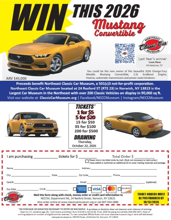 well as the rich heritage of New York. The Museum opened on Memorial Day weekend 1997, and over 200 vehicles from 1899 through the early 1980s are on display in five connected buildings. The vision of the Museum is to provide Norwich and the surrounding communities with a major tourist destination, thereby enhancing the area’s tourism appeal.
