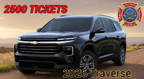 North Lawrence Volunteer Fire Department 5/09/2026 raffle – 2026 Chevrolet Traverse or $40,000 Dealer Credit Option (Federal State Tax Paid) – (Ends When all Tickets Sold)    (posted 4/11/2026)