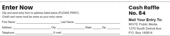 The WGTE Public Media Cash Raffle ("Raffle") is conducted for the purpose of generating operating funds to support the charitable activities of WGTE.
